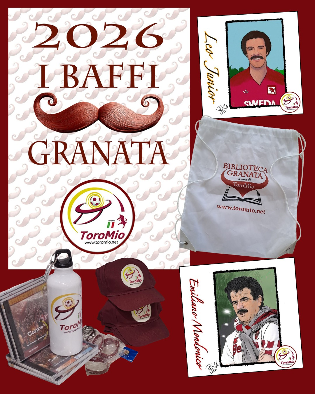 BORRACCIA, CAPPELLINO, BRACCIALETTO, CD CANTA TORO, SPILLA, STRISICIONE TOROMIO, FOTO GRANDE TORINO